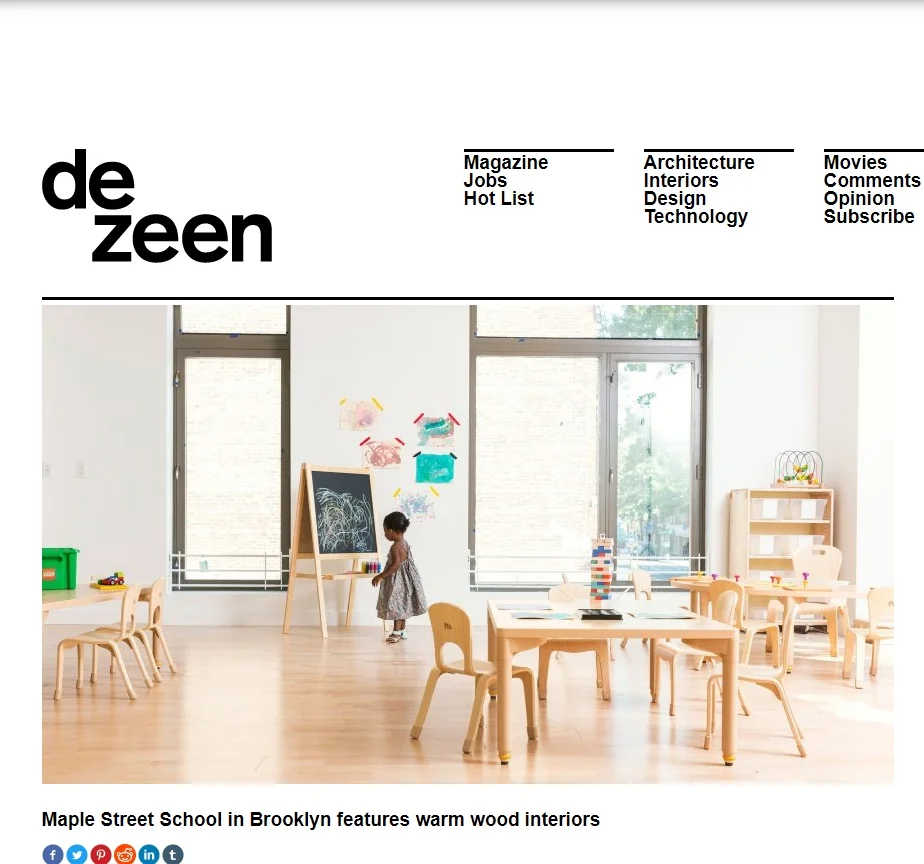 Maple Street School in Brooklyn features warm wood interiors.